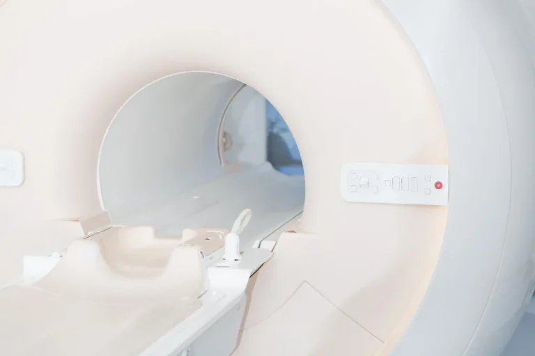 2. เปลี่ยนชุด–ถอดโลหะ, นอนราบนิ่ง ๆ ในอุโมงค์ MRI 20–40 นาที/บริเวณ